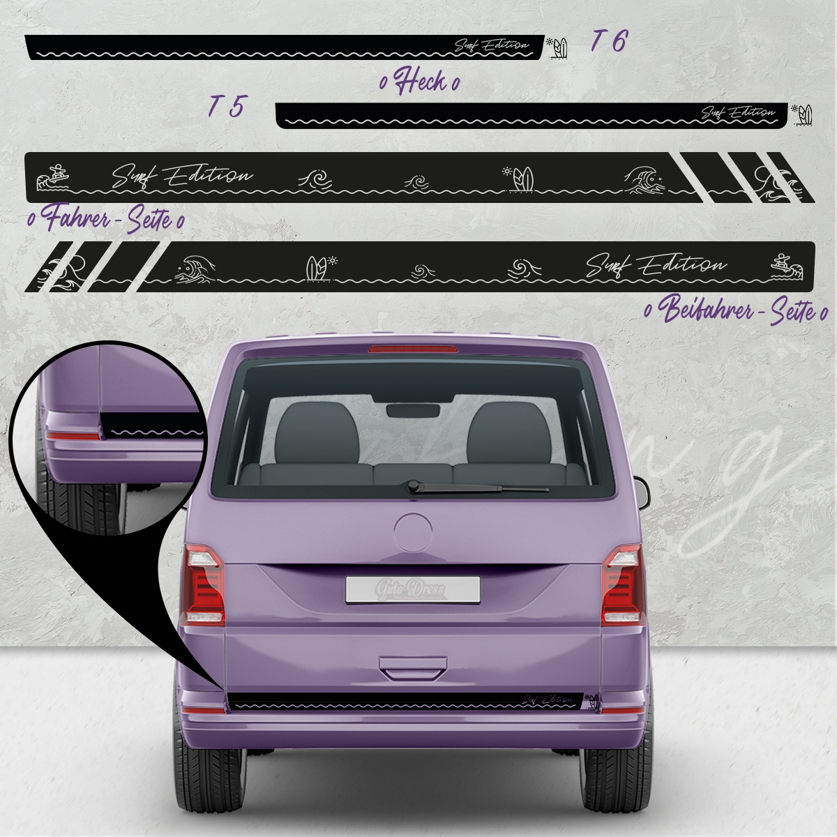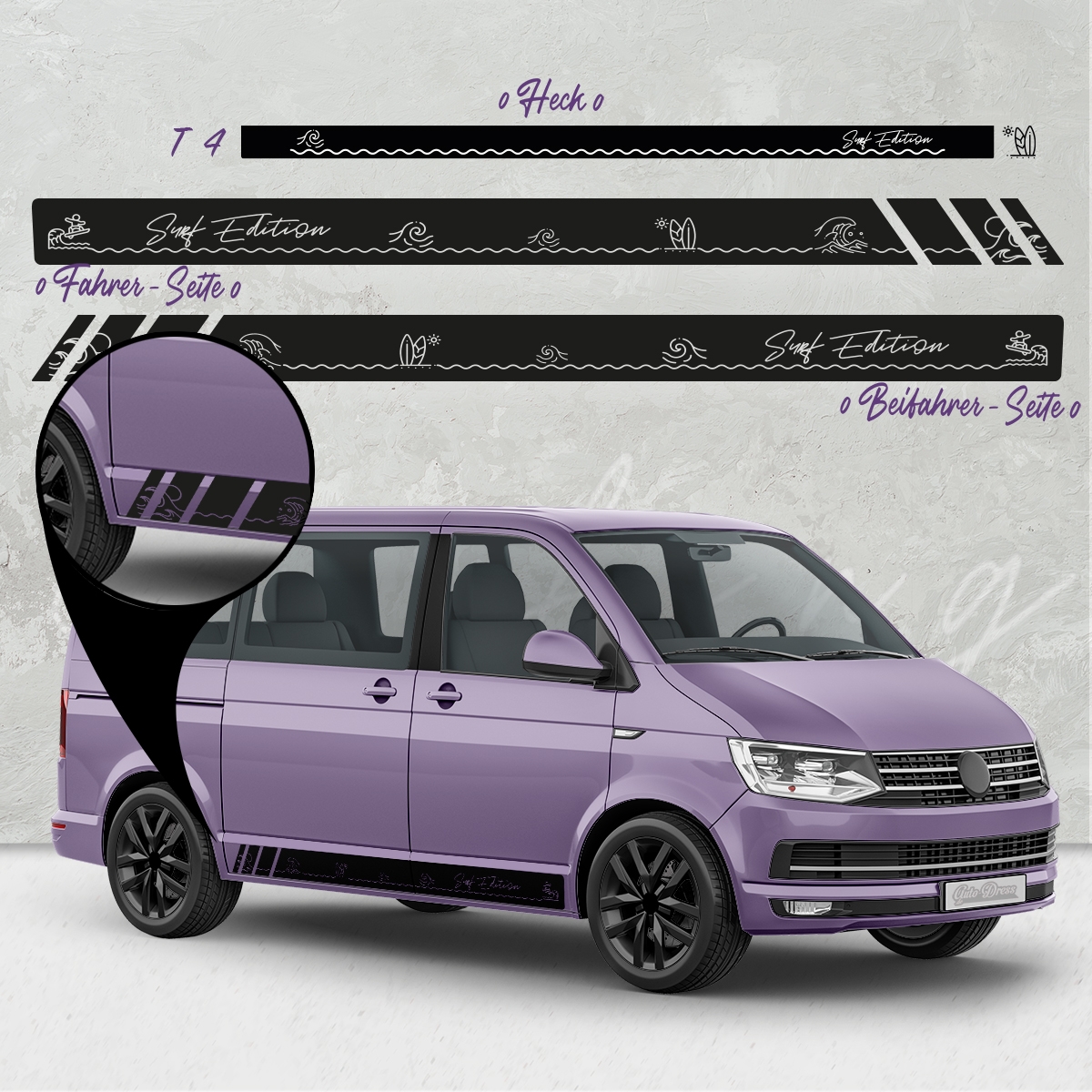 Aufkleber - Seiten-StreifenSet/Dekor passend für Volkswagen / VW T5 & T6 Surf Edition Racing in Wunschfarbe