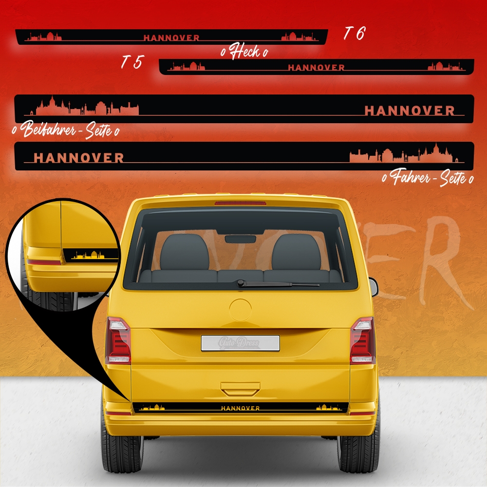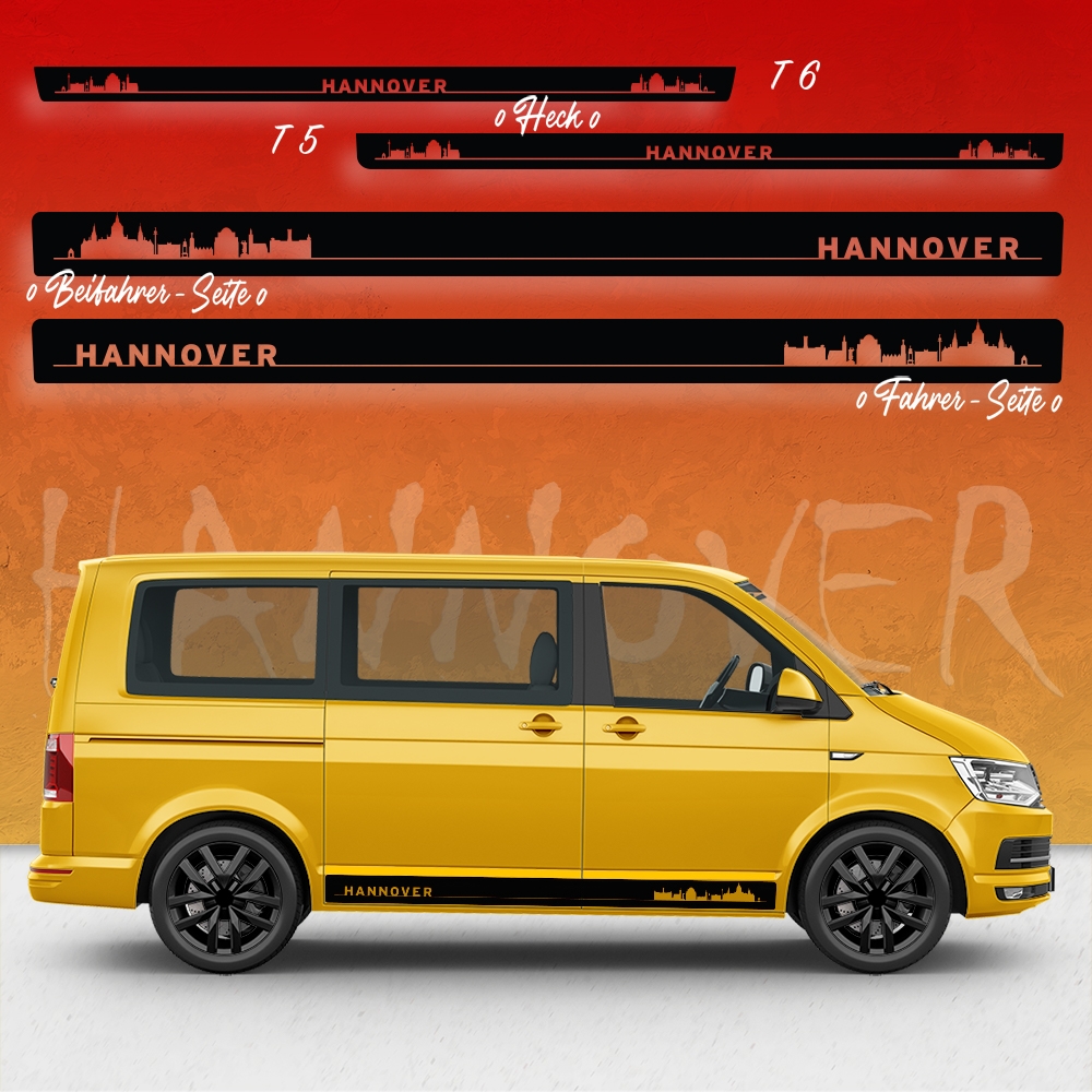 "Skyline Stadt Hannover" Seitenstreifen Set/Dekor passend für Volkswagen / VW T5 & T6 Original in Wunschfarbe